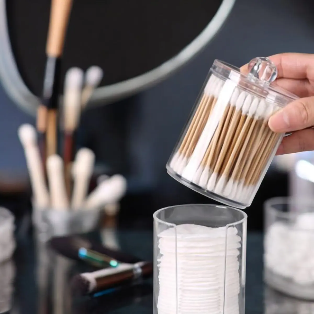 Porta Hisopos y Discos de Algodón. Acrílico.